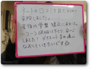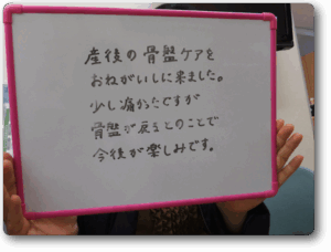 産後の骨盤矯正に来ました。