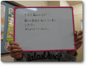 痛みの原因がわかり、少し安心しました。