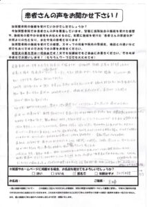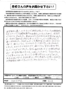 「事故の治療を終了すると、また痛くなり出すのでは…。」と心配していた私に、先生は「責任を持つので大丈夫ですよ」という言葉をかけてくれ、安心して治療を終える事が出来ました。