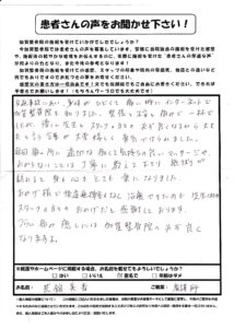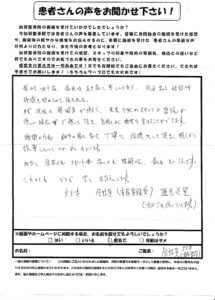 施術の方も、相手の身になって丁寧に施術をしてくれて、明らかに改善していくのを実感できました。
