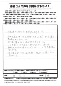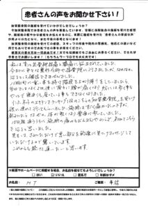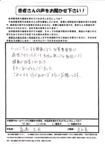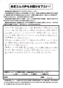 ヘルニアによる腰痛により加賀整骨院に通院させていただいて、先生の熱心な施術により、腰痛が改善されました。